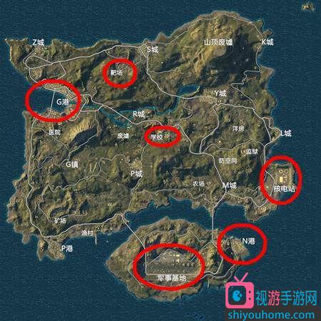 一、海岛地图:N港、学校、军事基地、核电站和附近的工厂、靶场和G港。