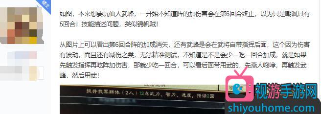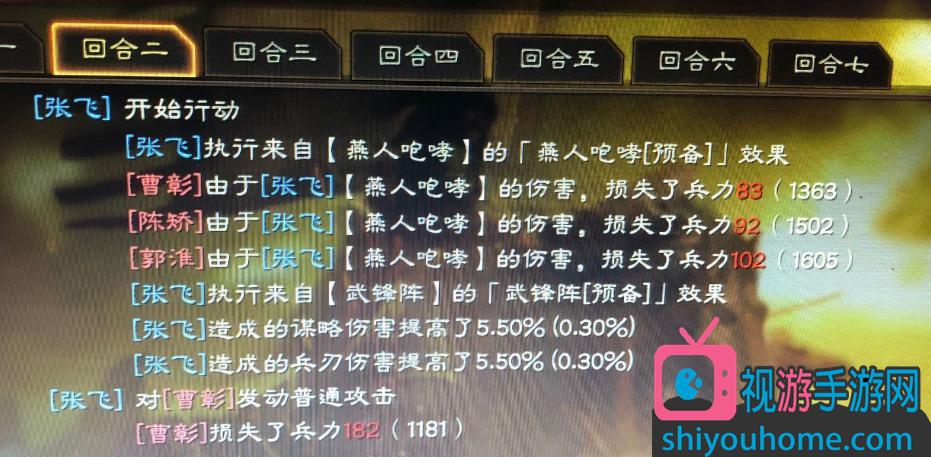 战报中,武锋阵确实有加成效果,也确实给了张飞加成效果。但是,武锋阵给张飞的加成却都是在张飞已经释放完毕自己的自带被动战法燕人咆哮之后才触发的,这样算下来的话,张飞受到的武锋阵加成实际少了很多,连预计伤害的一半都没有达到。