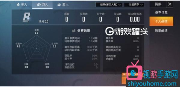 玩家点击个人信息界面右边的个人战绩即可查看赛季的KD了