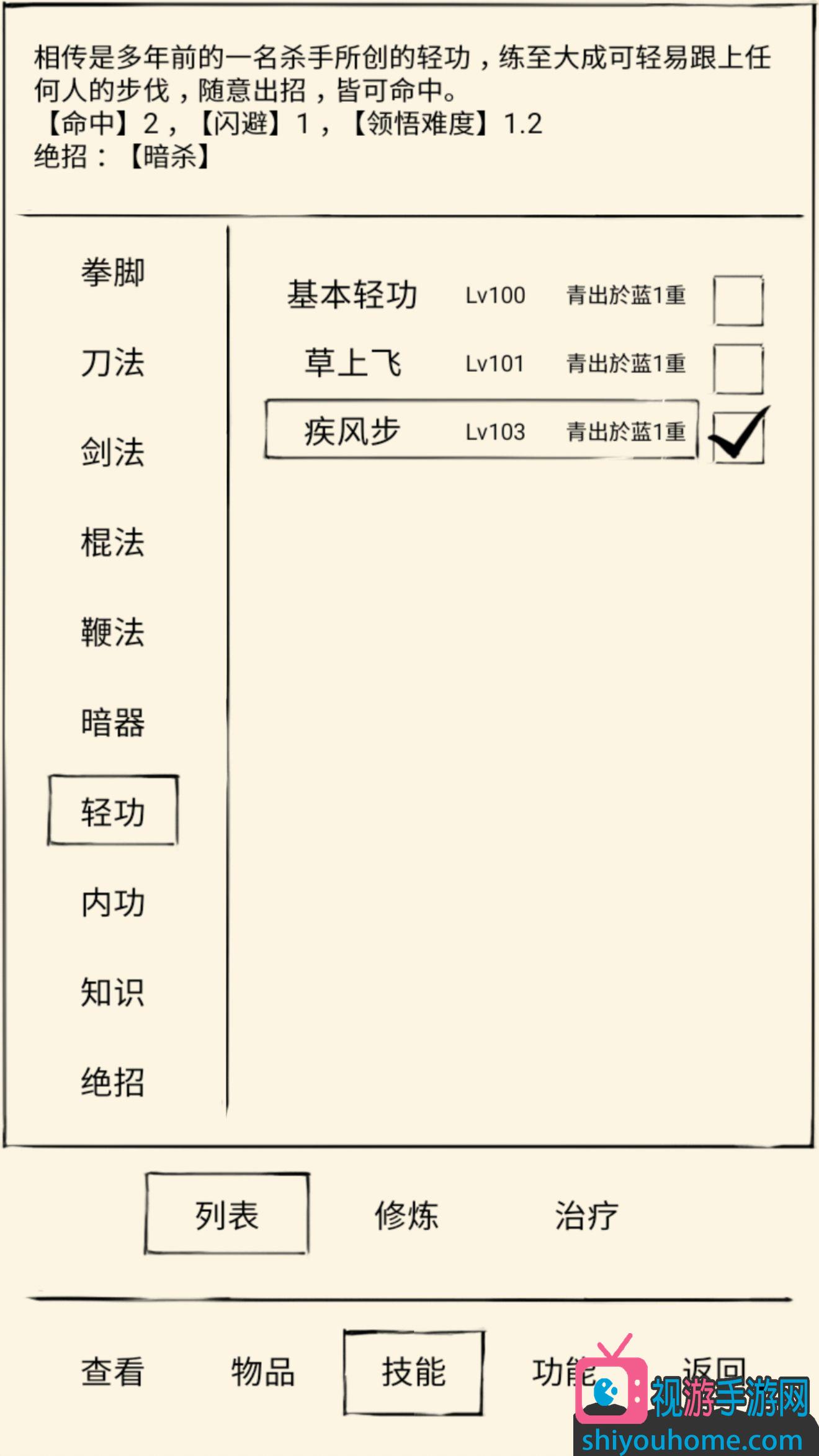相传是多年前的一名杀手所创的轻功,练至大成可轻易跟上任何人的步伐,随意出招,皆可致命。