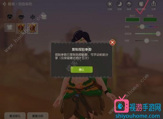 如果觉得自己的模型很不错,可以点击右上角的参数复制,复制在剪切板上分享给伙伴们。也可以复制大神们的捏脸~