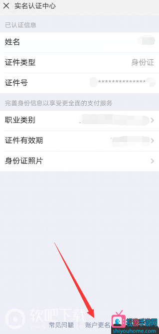 4、在认证中心的最下方,有账户更名,点击即可更改。