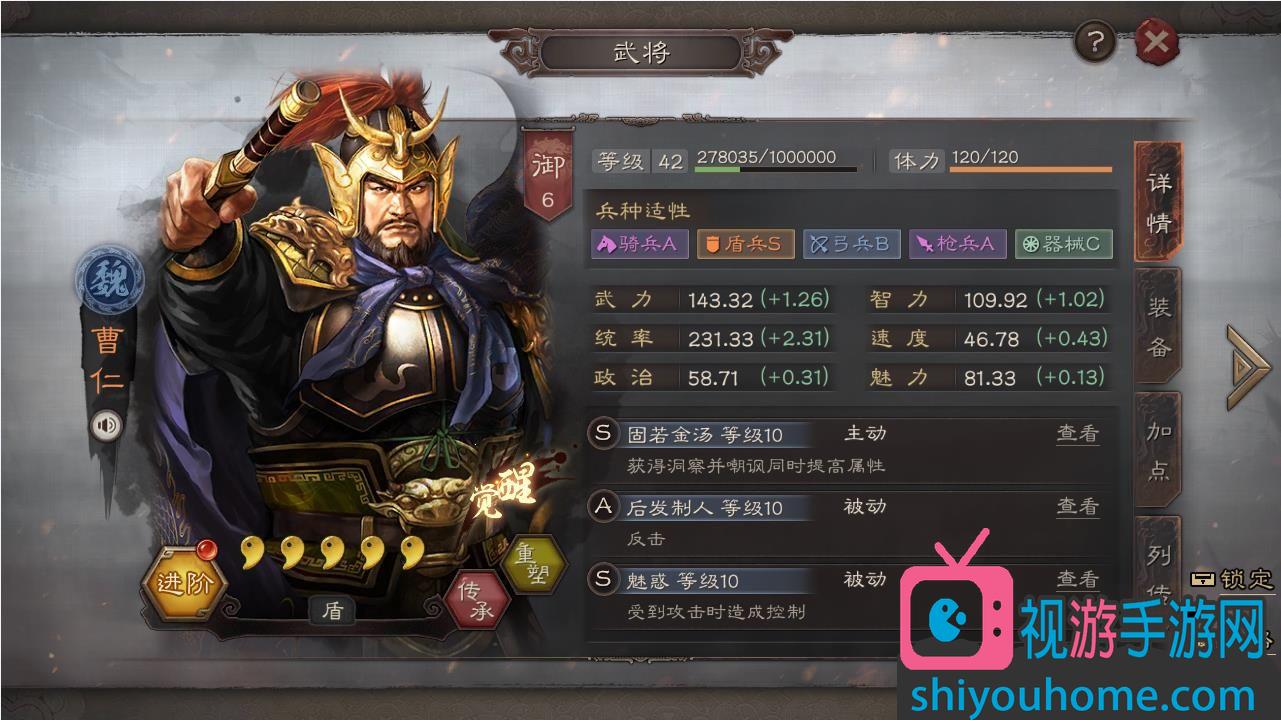 陷阵营:全体武力、统率提高11到22点,战斗前3回合获得急救状态,即受到伤害时有30%的概率获得治疗(治疗率30%到60%,受智力影响)