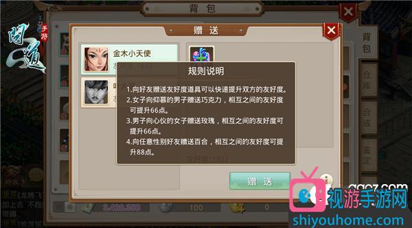 除了帮助大胡子外,道友们还可以通过互赠礼物的方式迅速提升双方友好度。购买精巧美丽的情缘盒,打开即可随机获得百合、巧克力、玫瑰等快速增加友好度的礼物。百合可以男女互赠,女子可以将甜蜜的巧克力赠与心仪的男子,而玫瑰当然是男子赠给心仪女子的代表礼物啦。