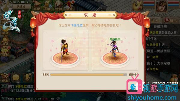 友好度达到要求后,道友就可以去向心仪的那个TA提亲啦!注意啦,必须是要结婚的双方二人组队且由男方带队去天墉城找NPC“红娘”才行,提亲这等大事,怎么好意思让女孩子抛头露面呢?婚姻之事,父母之命,媒妁之言,男方发起求亲后,等女方同意后,红娘便会让道友们分别去征得对方师尊的同意。女方的师尊自然是舍不得自家弟子受苦,会让男方准备聘礼,才肯将女方许配给男方。