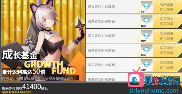 成长基金只能买一次,会根据推图进度给相应的钻石,无论是先过图再买还是先买再推图,都能拿到钻石,因此可以先推图,感觉打算玩下去了再买。成长基金加起来可以抽15个十连,基本保证该有的都会有了。