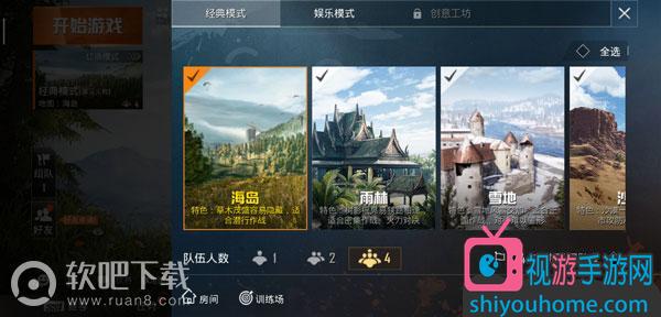 2.在切换模式界面可以选择地图、玩法,在下面可以看到【房间】按钮;