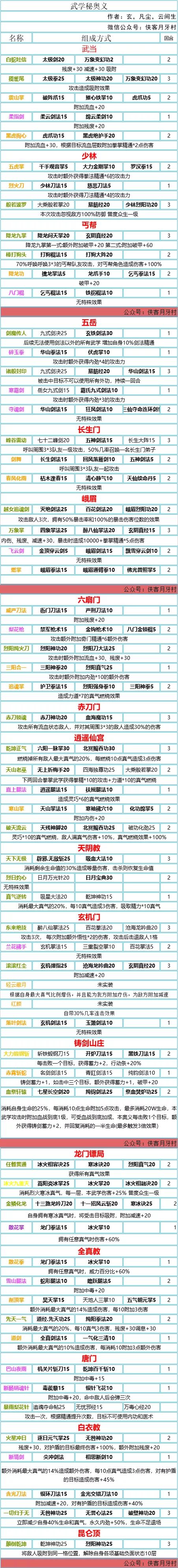 奥义组合表