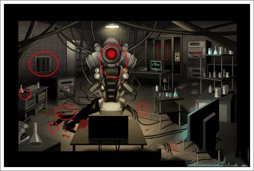3.现场调查 点击尸体 少了一个螺丝的排风机 湿的脚印 点中间那个大机器能得到隐藏的对话